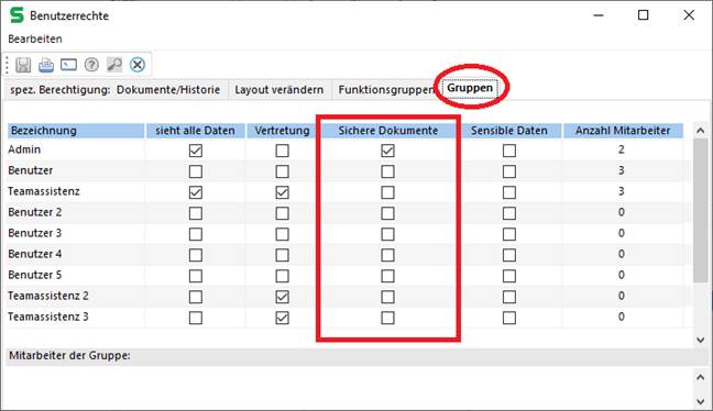 Rechtevergabe für Sichere Dokumente (Administratoren-Funktion)