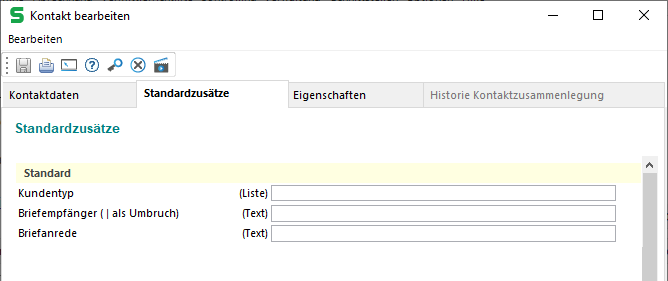 Über die verschiedenen Karteireiter kann das Bearbeitungsfensters für Kontakte gewechselt werden. Hier stehen für alle Zusatzinformationen zur Ansicht bzw. Bearbeitung bereit, die für den ausgewählten Personentyp definiert sind.