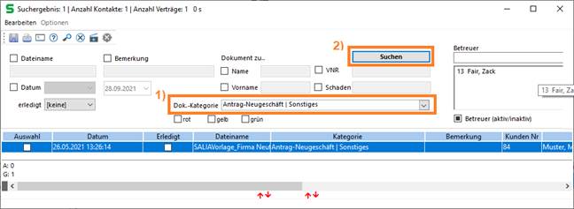 Dokumente können über die Dokumentensuche selektiert werden. Dabei kann die Dokumentenkategorie mit als Suchfaktor eingestellt werden.