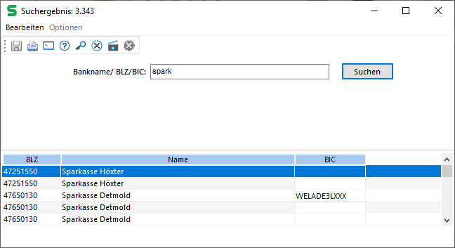 Via Doppelklick kann der gewünschte Datensatz ausgewählt werden. Damit wird er sofort in das zugehörige Bearbeitungsfeld übernommen.