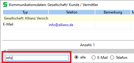 Suche nach Kommunikationsdaten im Vertrag des Kunden