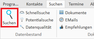 Der Wechsel in die Suchfunktion kann auch über das Kontextmenü im Kontaktdatenbereich oder über die Funktionstaste " F3" erfolgen.