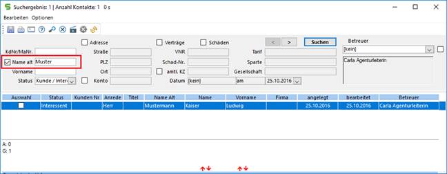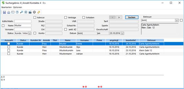 Schließen die Suchkriterien auch Vertragsdaten ein, kann über den