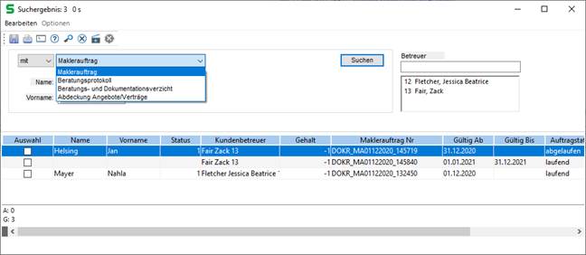 Beispiel: Suche alle Kontakte mit Maklervertrag