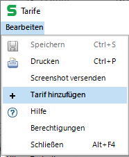 Aufruf des Fensters Neuer Tarif über das Menü |