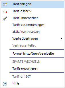 Tarife dürfen nur mit Administratorrechten erstellt und bearbeitet bzw. einer Sparte zugeordnet werden. Bitte wenden Sie sich an Ihren Administrator, wenn ein Tarif nicht erfasst sein sollte. |