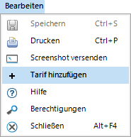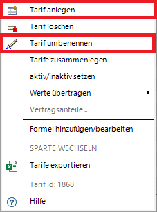 Um einen Tarif zu bearbeiten, rufen Sie im Kontextmenü die