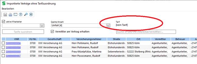 Es werden Ihnen alle Verträge ohne Tarifzuordnung angezeigt.