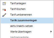 aufgerufenen Fenster werden die Tarife angezeigt, die zusammengelegt werden