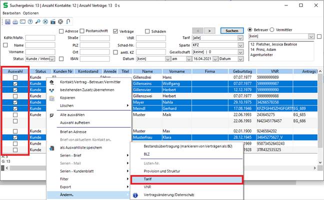 Es ist über die Suchfunktion auch möglich mehrere Verträge auf einmal zu ändern.