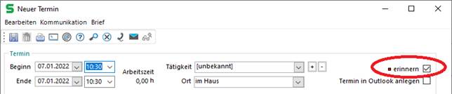 Terminerinnerung beim Erstellen des Termins aktivieren