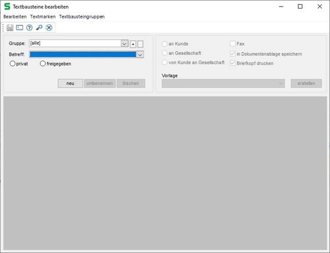 Aufruf des Fensters zur Bearbeitung von Textbausteinen