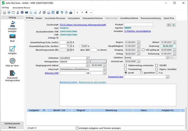 "versicherte Person löschen"  können diese dem Vertrag zugeordnet oder