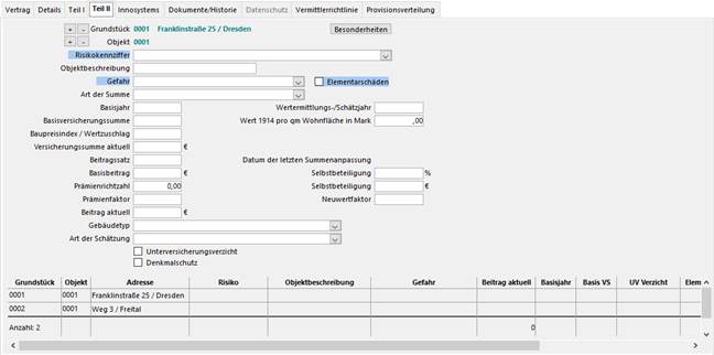 zusätzliche Schaltfläche der Karteikarte Teil II [Verbundene Gebäudeversicherungen]