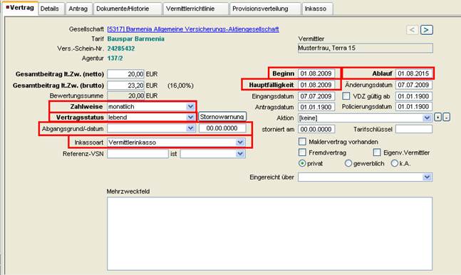 Es kann verschiedene Gründe haben, warum ein Vertrag bei der Erstellung einer Lastschrift ausgenommen wird. Kontrollieren Sie bitte zuerst die im Folgenden gezeigten Vertragseinstellungen.
